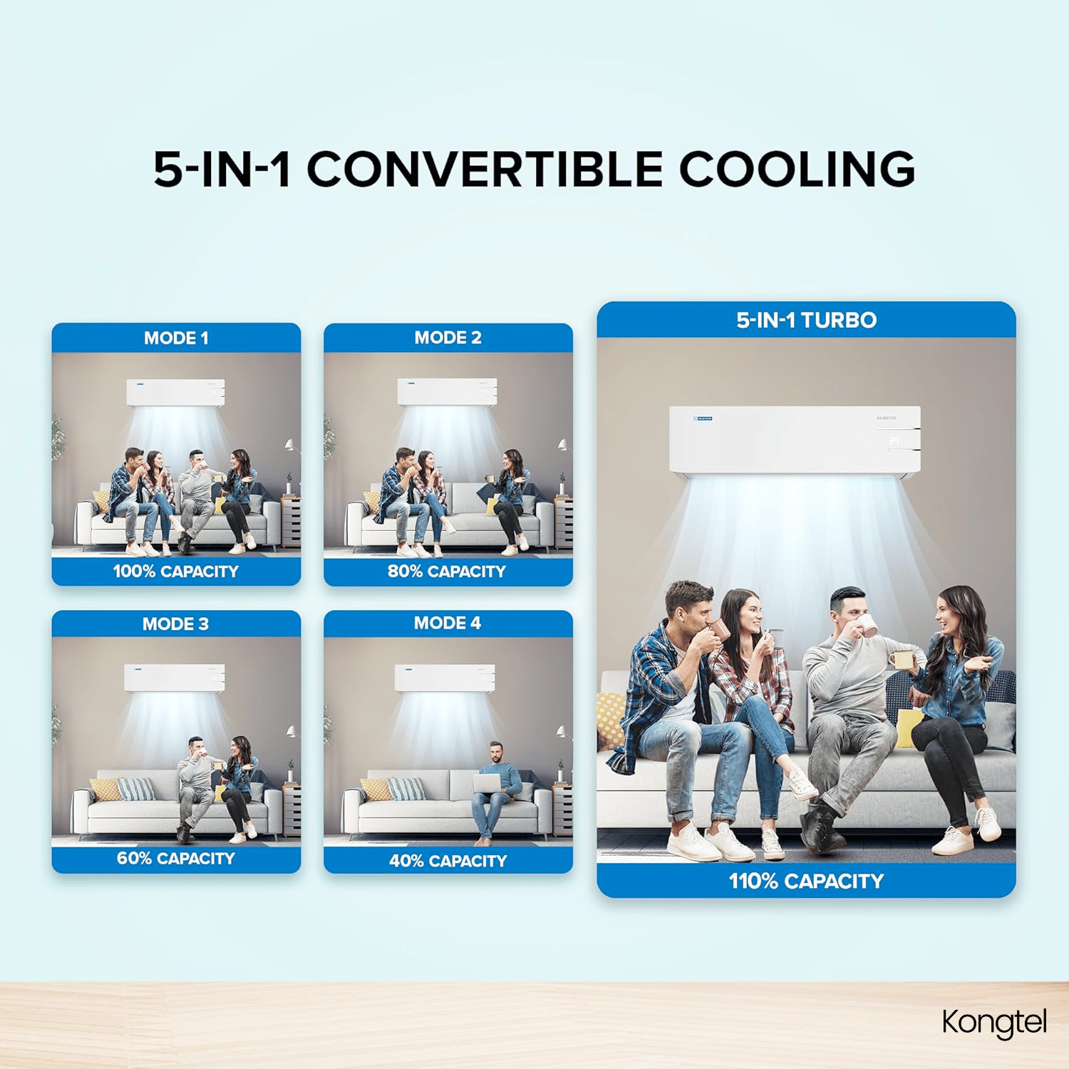 Kongtel – 1.5 Ton 3 Star Inverter Split AC (5 in 1 Convertible, Copper, Anti-Viral + PM 2.5 Filter, 2023 Model, White with Chrome Deco Strip, GLS18I3FWAGC)