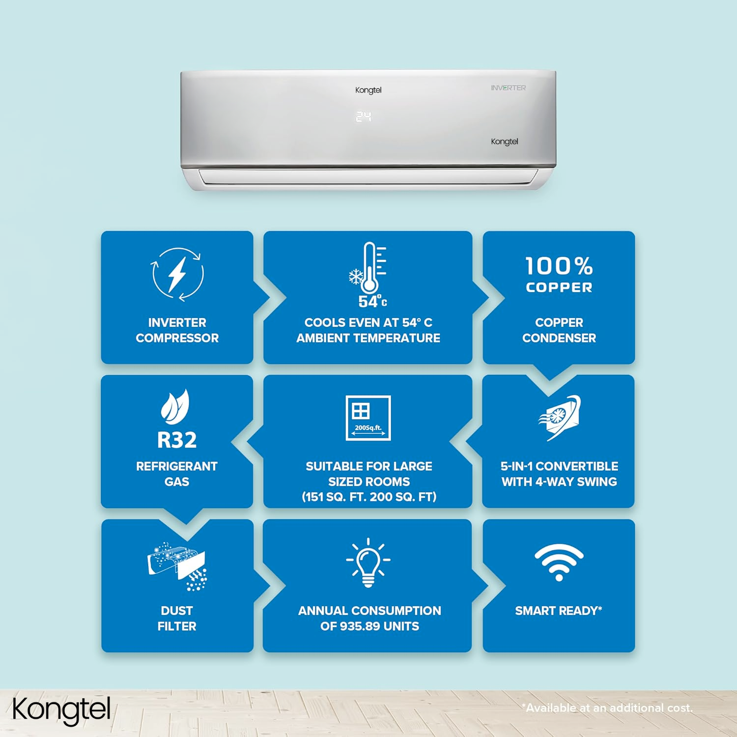 Kongtel 2 Ton 3 Star, Fixed Speed Split AC (Copper, LED Display, Anti-dust Filter, 2025 Model, 243 Vectra Plus, White)