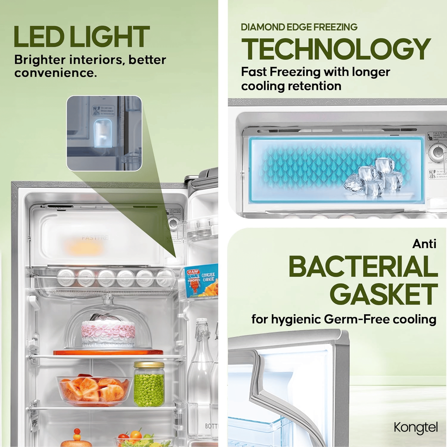 Kongtel 185 L 4 Star Direct-Cool Smart Inverter Compressor Single Door Refrigerator (GL-VDFBDF, Shiny Steel, Base Stand with Drawer)