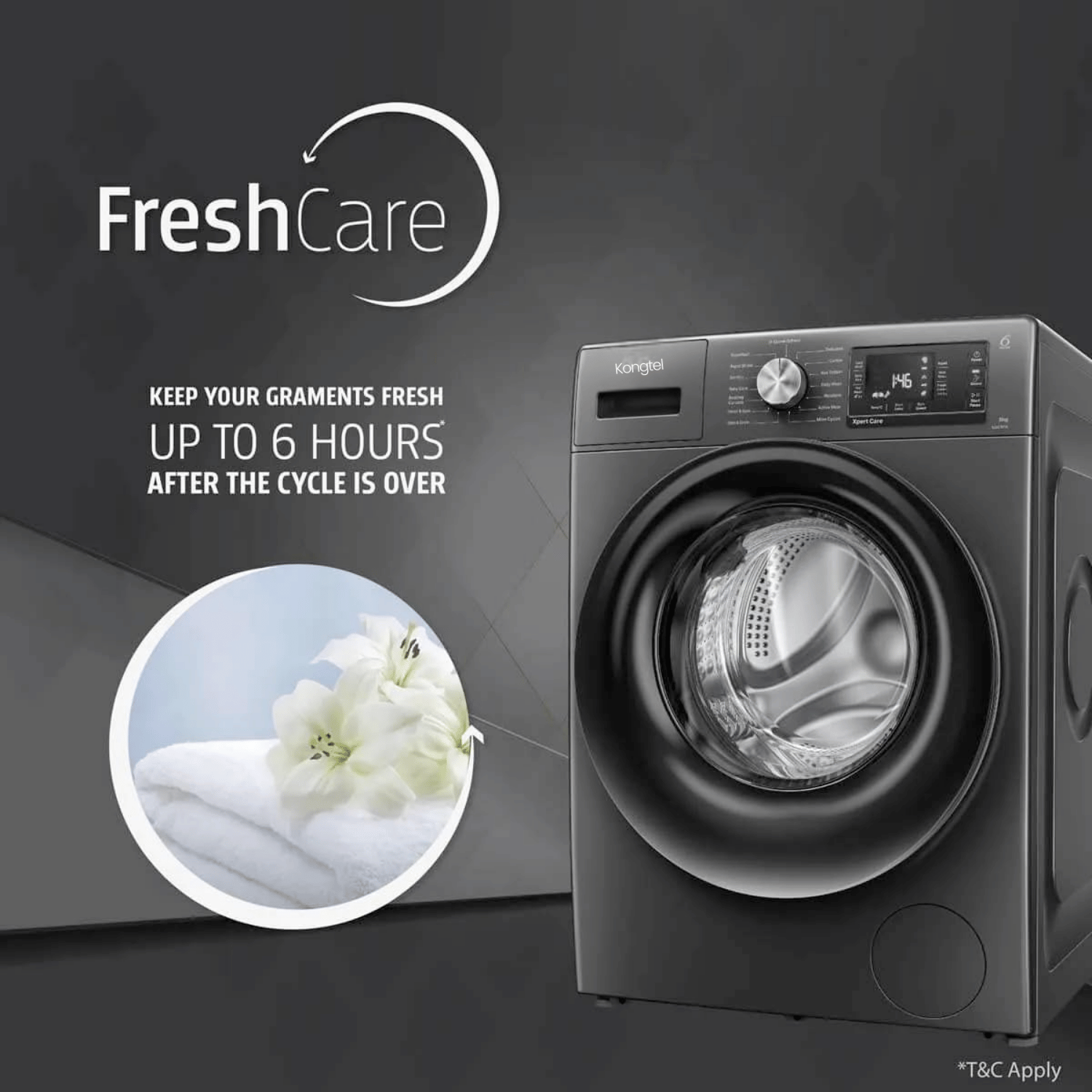 Kongtel 7 Kg 5 Star Inverter Touch panel Fully-Automatic Front Load Washing Machine with In-Built Heater (FHM1207SDM, Middle Black, Steam for Hygiene Wash).
