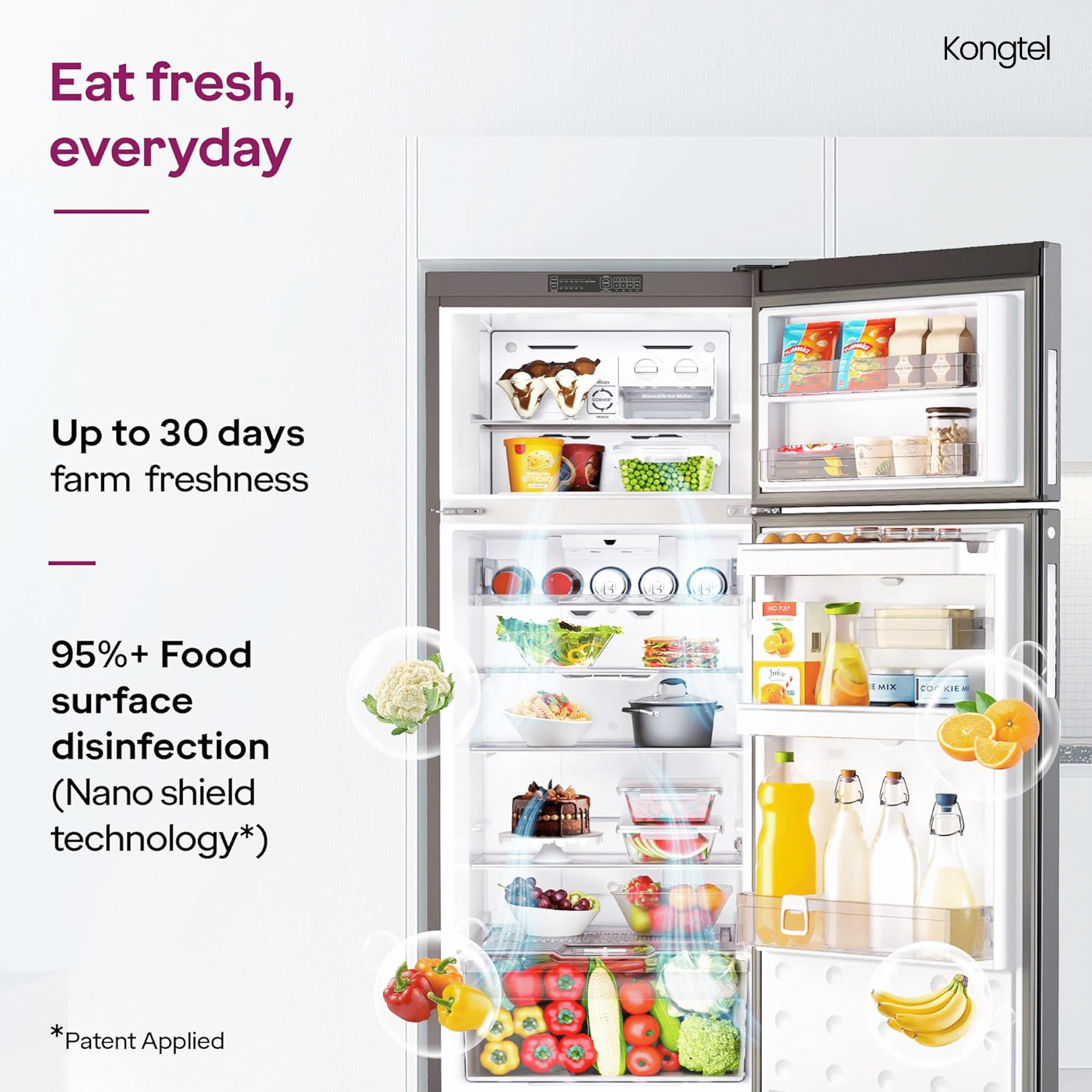 Kongtel 308 L 2 Star IntelliFresh Inverter Frost Free Double Door Refrigerator (IFINV/DF355 Omega Black(2S)-TL, 2025 Model)
